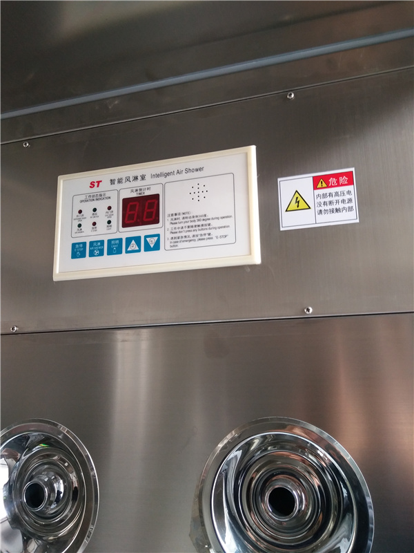 4、電源開關(guān)。通常風(fēng)淋室有四個地方可以切斷電源:1、風(fēng)淋室外箱體的電源開關(guān);2、風(fēng)淋室內(nèi)箱體的控制面板;3、4、風(fēng)淋室兩側(cè)外箱體上(此處電源開關(guān)可預(yù)防緊急情況下切斷電源,有效地提高工作人員的人身安全)。當(dāng)電源指示燈不通時,不防重新檢查一下以上四個風(fēng)淋室電源處。