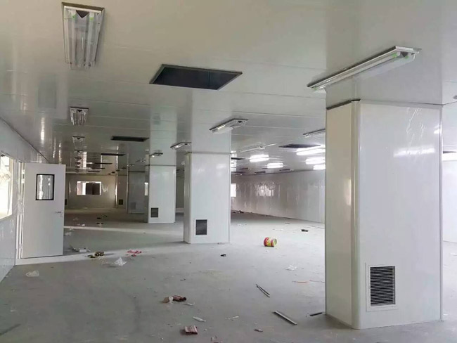 1).結構部分一般凈化廠房墻、頂板材一般多采用50mm厚的夾芯彩鋼板制造,其特點為美觀、剛性強、保溫性能好、易施工。圓弧墻角、門、窗框等一般采用專用凈化專用型材制造。